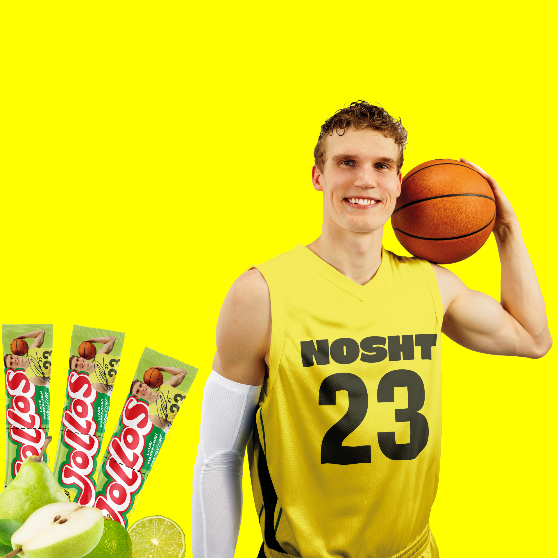 Koripallotähti Lauri Markkanen ihastui viime kesänä Suomessa treenatessaan Noshtin Jollos vauhtikarkkeihin. Lauri otti meihin yhteyttä ja kertoi, että tekis mielellään jotain yhdessä. Siitä alkoi yhteinen tuotekehitysprojekti, jonka hedelmänä syntyi tämä päärynää ja limeä sisältävä energiaherkku.
